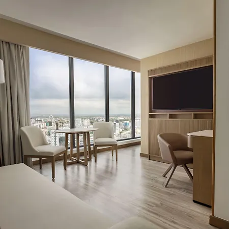 Otelde çalışma masası, kahve/çay makinesi, özel kasa ile birlikte şehir manzaralı 203 oda bulunmaktadır.